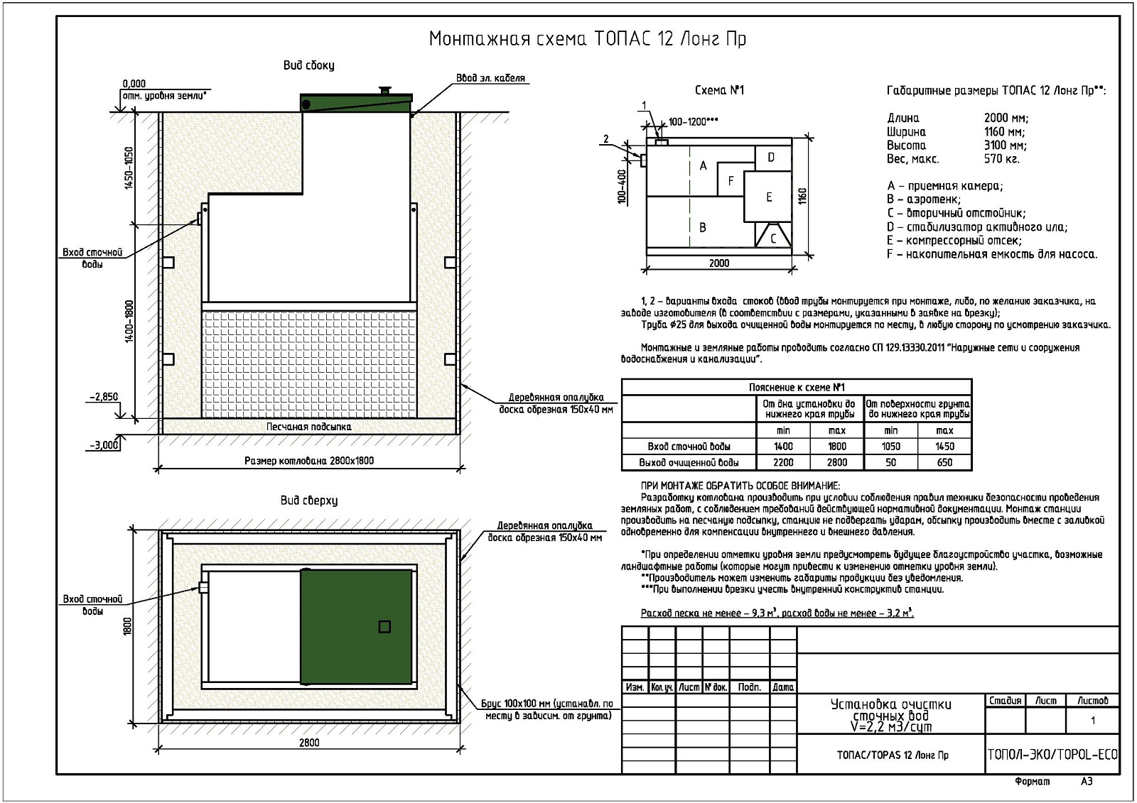 | Производительность | 2,2 м3/сут. |